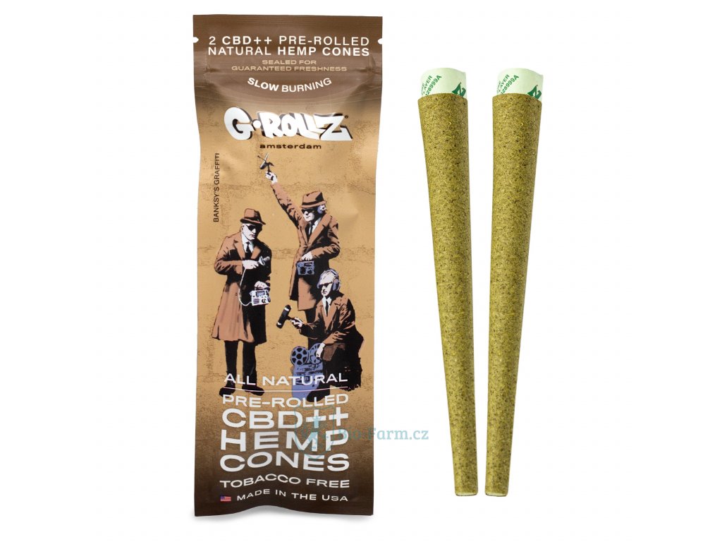 2 cônes de chanvre biologique pré-roulées dans un paquet.